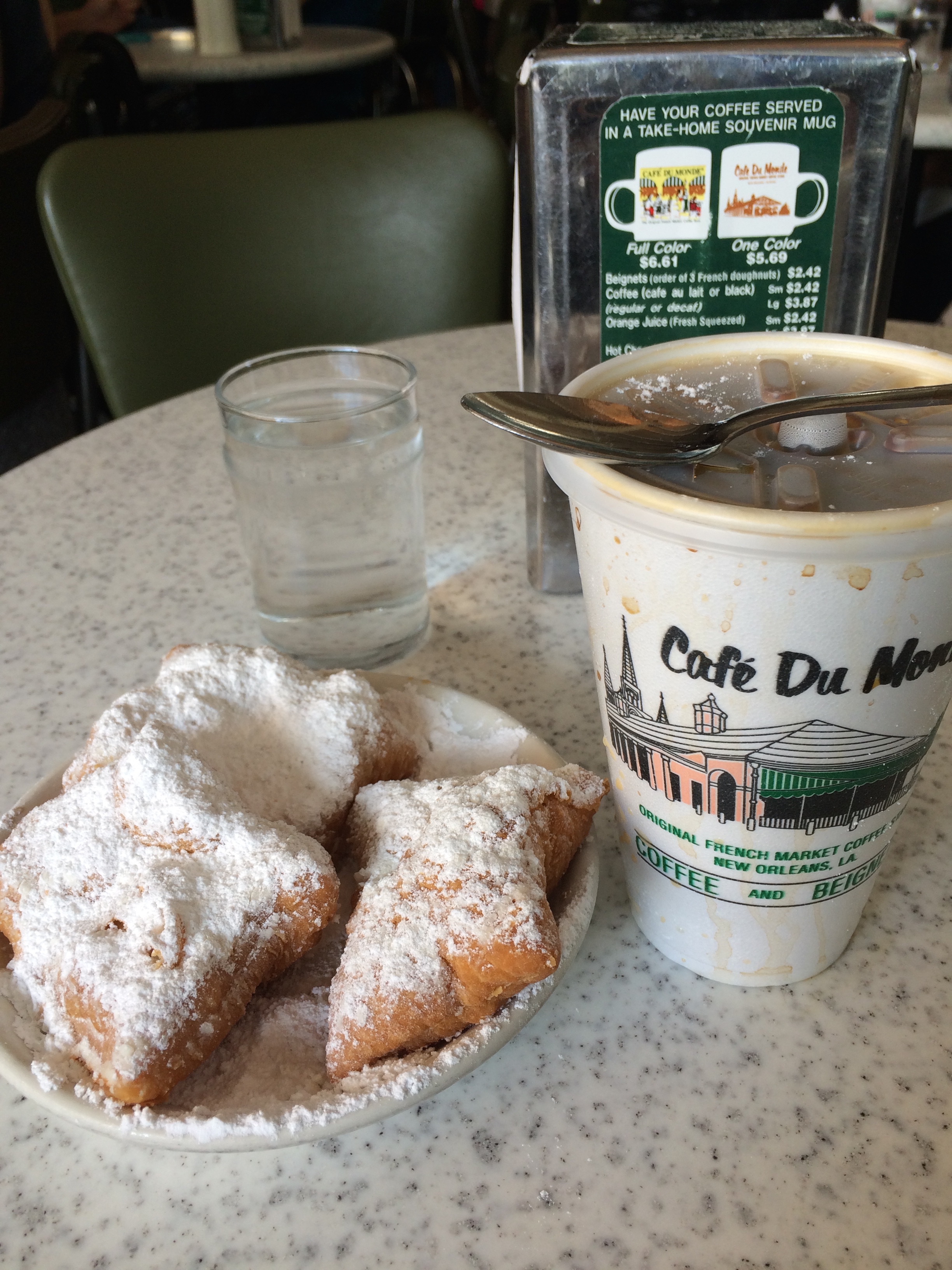 So yes, during my lunch hour on Friday, I BOLTED to the most famous Beignet/Coffee Shop in the city: Cafe du Monde.