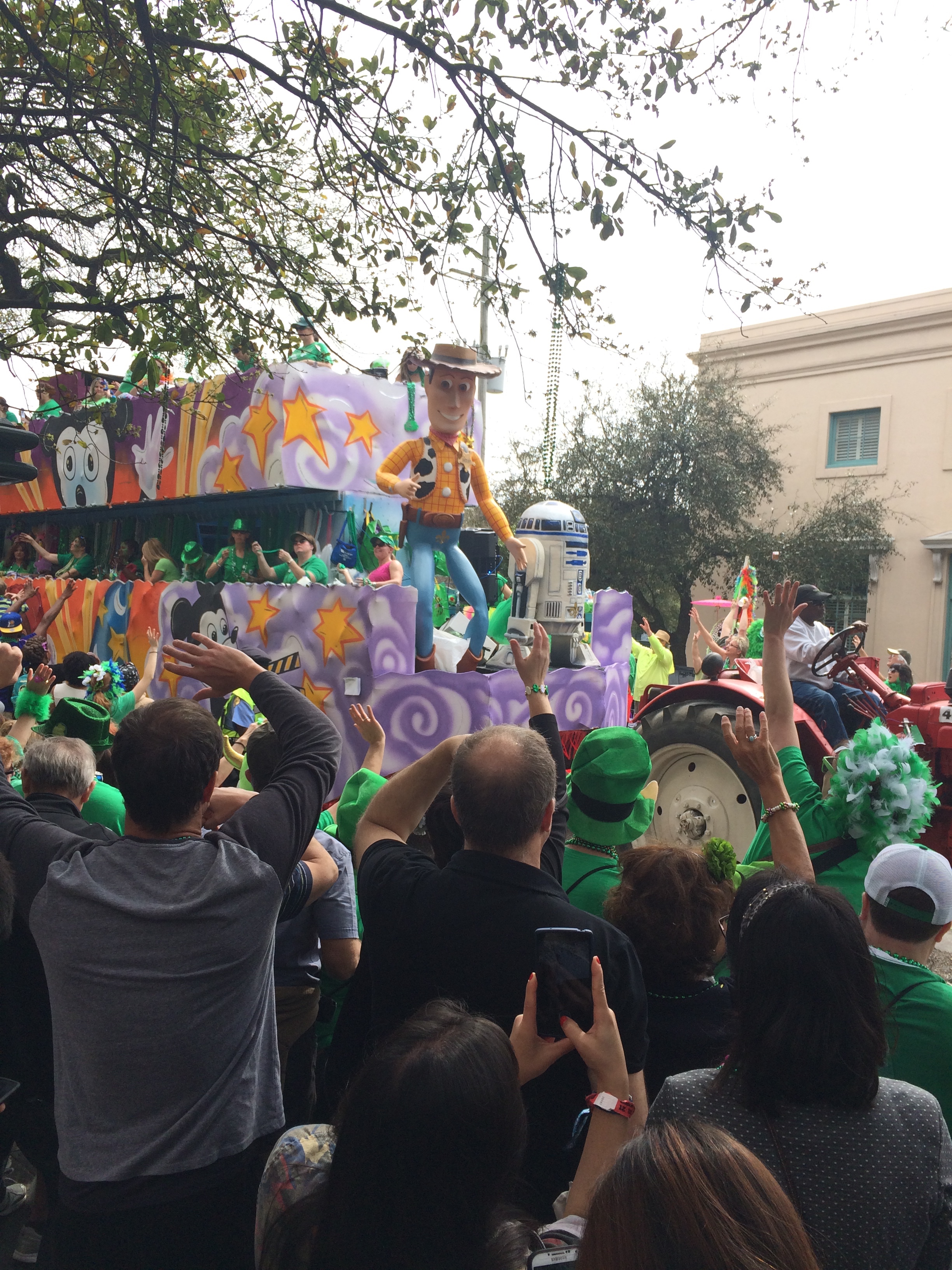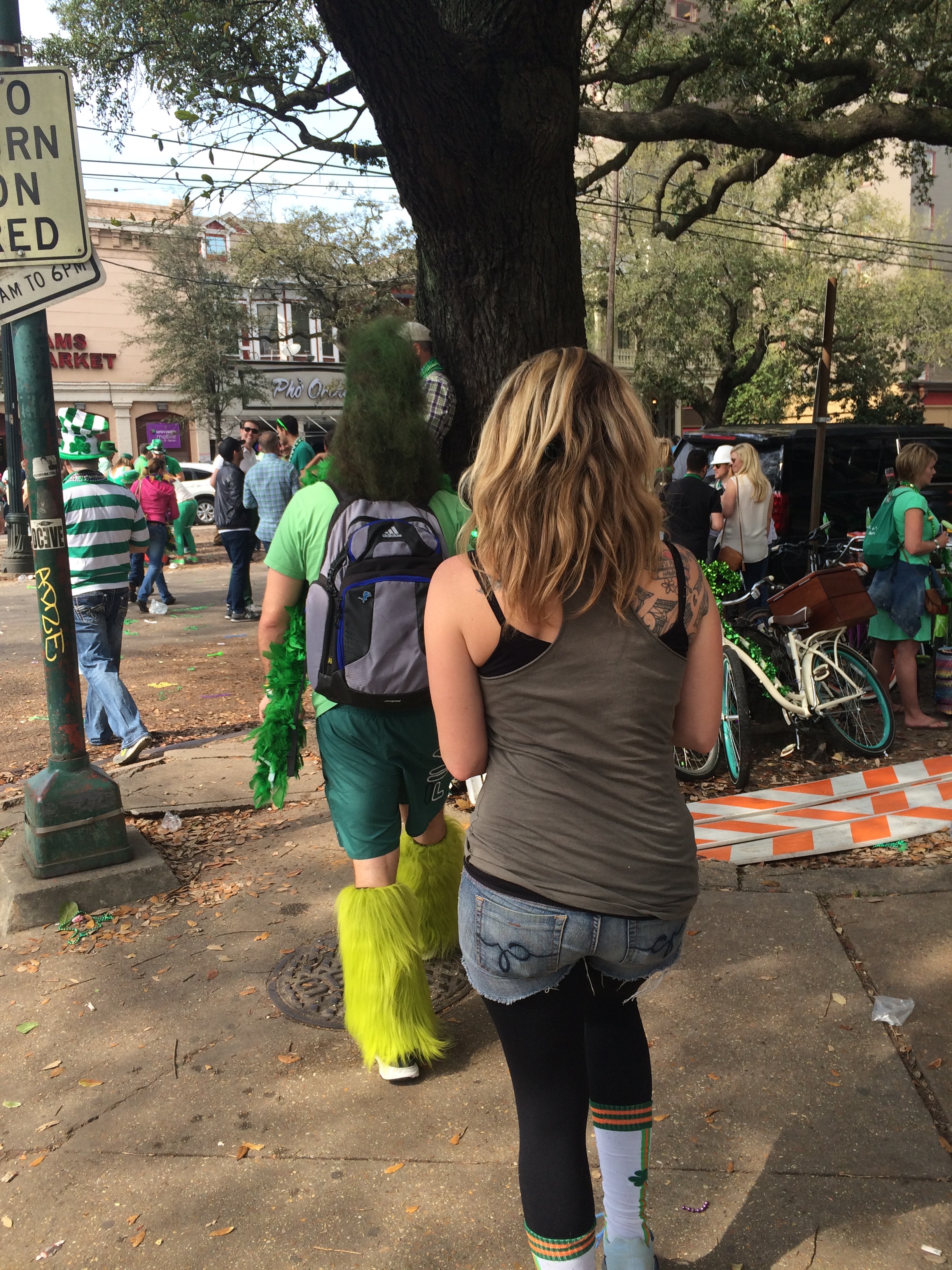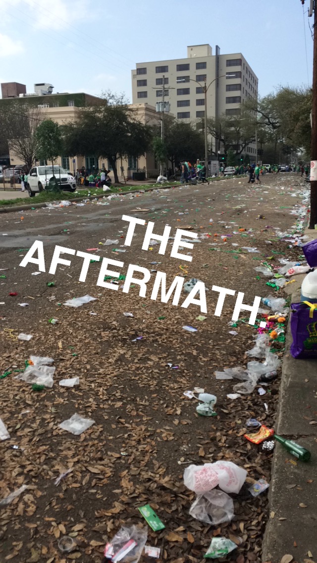 Call me a failed citizen of the world, but it had completely slipped my mind that I was in New Orleans for Saint Patty’s Day Weekend! So yeah, we ended up at the parade… which was CUH-RAZAY. Leave it to New Orleans to host some ridiculous St. Patty’s Shenanigans.