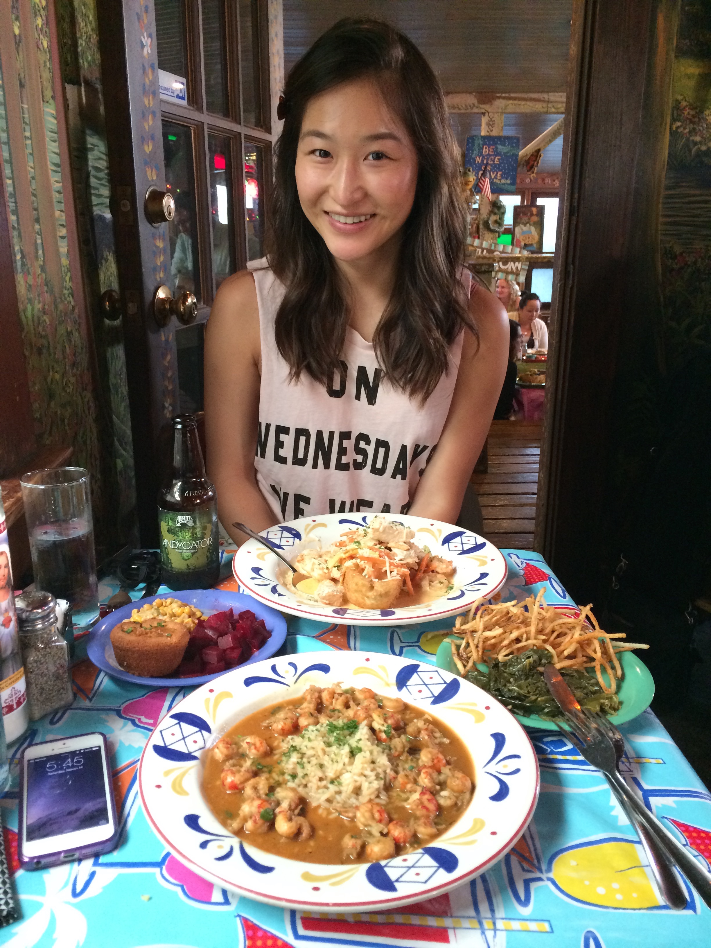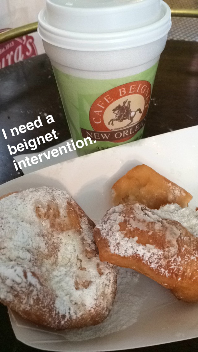 Now onto some N’awlins food. First off, let me offer a disclaimer. So you know how I went to Hawaii not long ago and ate like 5,000 calories a day every single day? Yeah, well, coming back from Hawaii, a few of us decided to go on a “Diet Bet”, wherein we would need to eat healthy every single day for 30 days with only 5 “cheat/unhealthy” portions per week (or risk losing $20). Vanessa and I were participants in said bet and actually saved up most of our “cheats” for New Orleans, thinking they would last through the weekend. Spoiler alert: they did not. Not even close (remember, I ate like 6 servings of beignets by myself). As expected, we lost the “Diet Bet”. But not even slightly begrudgingly, since I know we were both so much happier eating to our tummies’ content thereafter. #fatlifeforever
