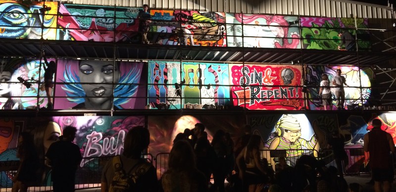 This was a large-scale art display of well-known local artists who, over the course of the festival, painted their pieces on large slabs of wood, which would then get auctioned off. This below photo was early on Day 1 of the festival (so you see many pieces unfinished):